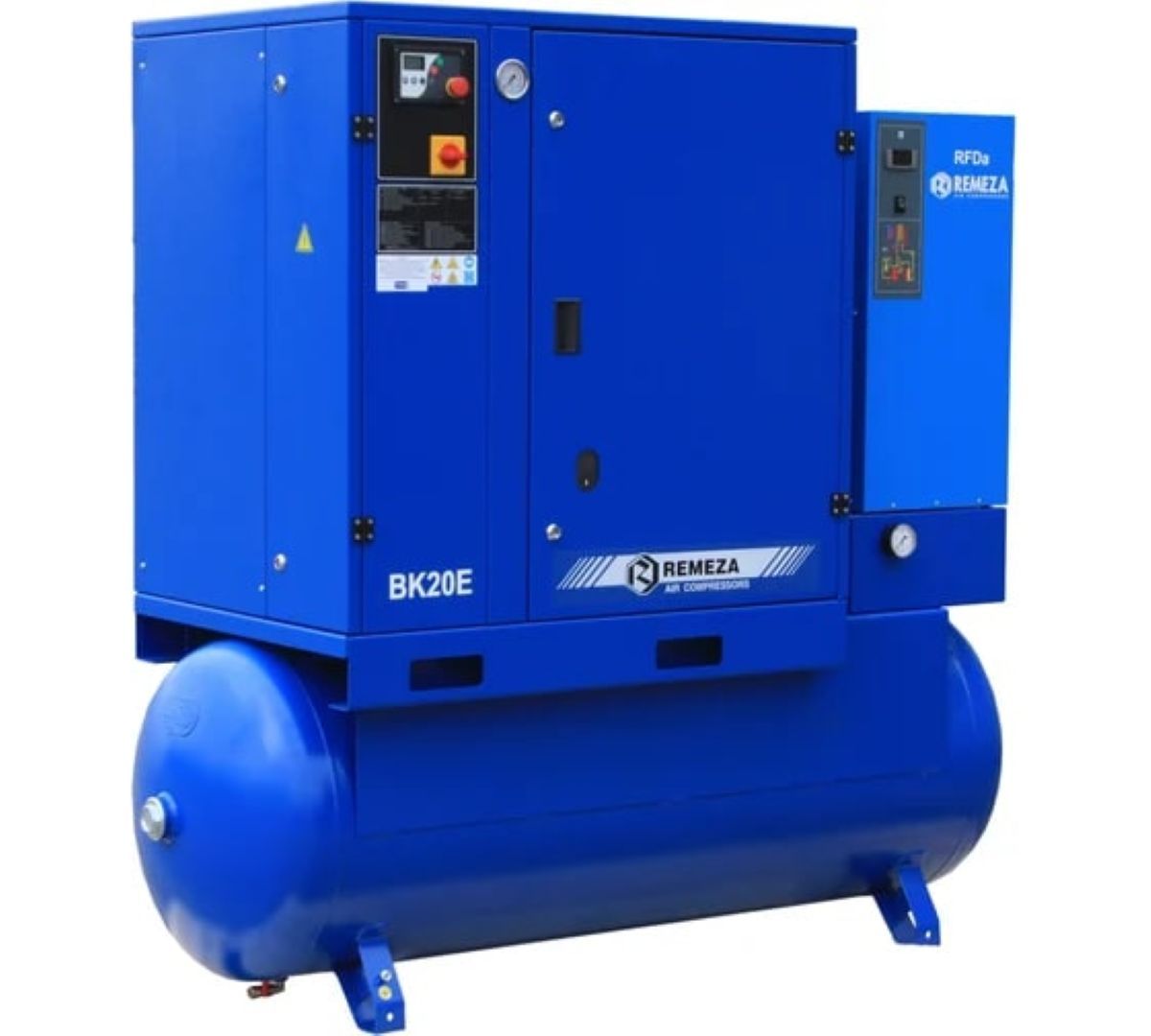Компрессор Remeza ВК20E-10-500Д состоит из винтового маслозаполненного блока и трехфазного двухполюсного электродвигателя, соединенных ременной передачей. Оборудование рассчитано на длительную работу в промышленных условиях. Благодаря шумозащитному кожуху и регулируемым винтовым опорам компрессор стационарно устанавливается на рабочих площадках и не требует заливки фундамента. Устройство характеризуется низкой стоимостью сжатого воздуха и позволяет отказаться от централизованного снабжения компрессорными станциями. Управление осуществляется электронным контроллером, снижающим потребление электроэнергии во время простоев подключенного пневматического оборудования.