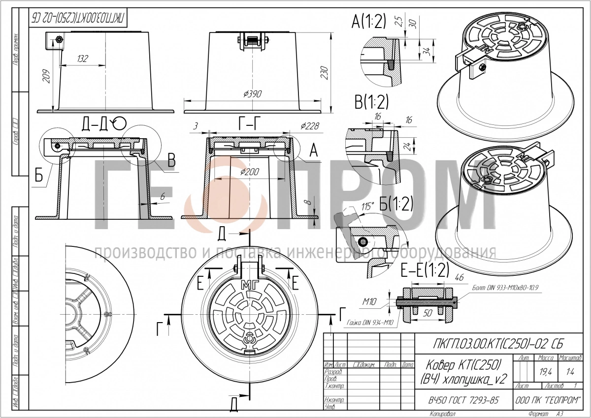 Газовый чугунный ковер (большой) отливается из высокопрочного чугуна ВЧ-50 и состоит из корпуса и ремонтопригодной, прикрученной на болты и гайки, крышки. Газовый чугунный ковер- проверенная десятилетиями конструкция, пригодная для любого полотна дорог и тротуаров.