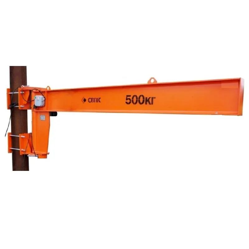 Кран состоит из консоли, оснащённой ручным поворотом, опорной колонны и тали. Отличительная особенность данного устройства заключается в способе передачи груза: внутри радиуса стрелы. Таль передвигается вдоль направляющей стрелы (двутавровая балка), тем самым создавая оптимальную зону покрытия внутри всей окружности. В качестве опорного элемента используется фланцевая труба, монтирующаяся на вертикальную (горизонтальную) поверхность. На конце стрелы установлен ограничитель, который блокирует таль и не даёт ей покинуть пределы двутавровой балки.