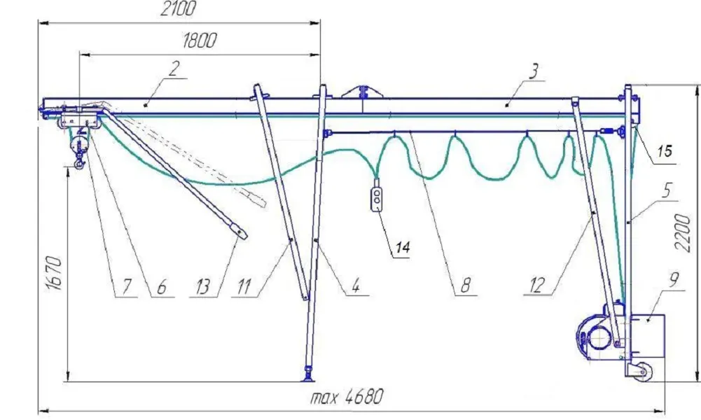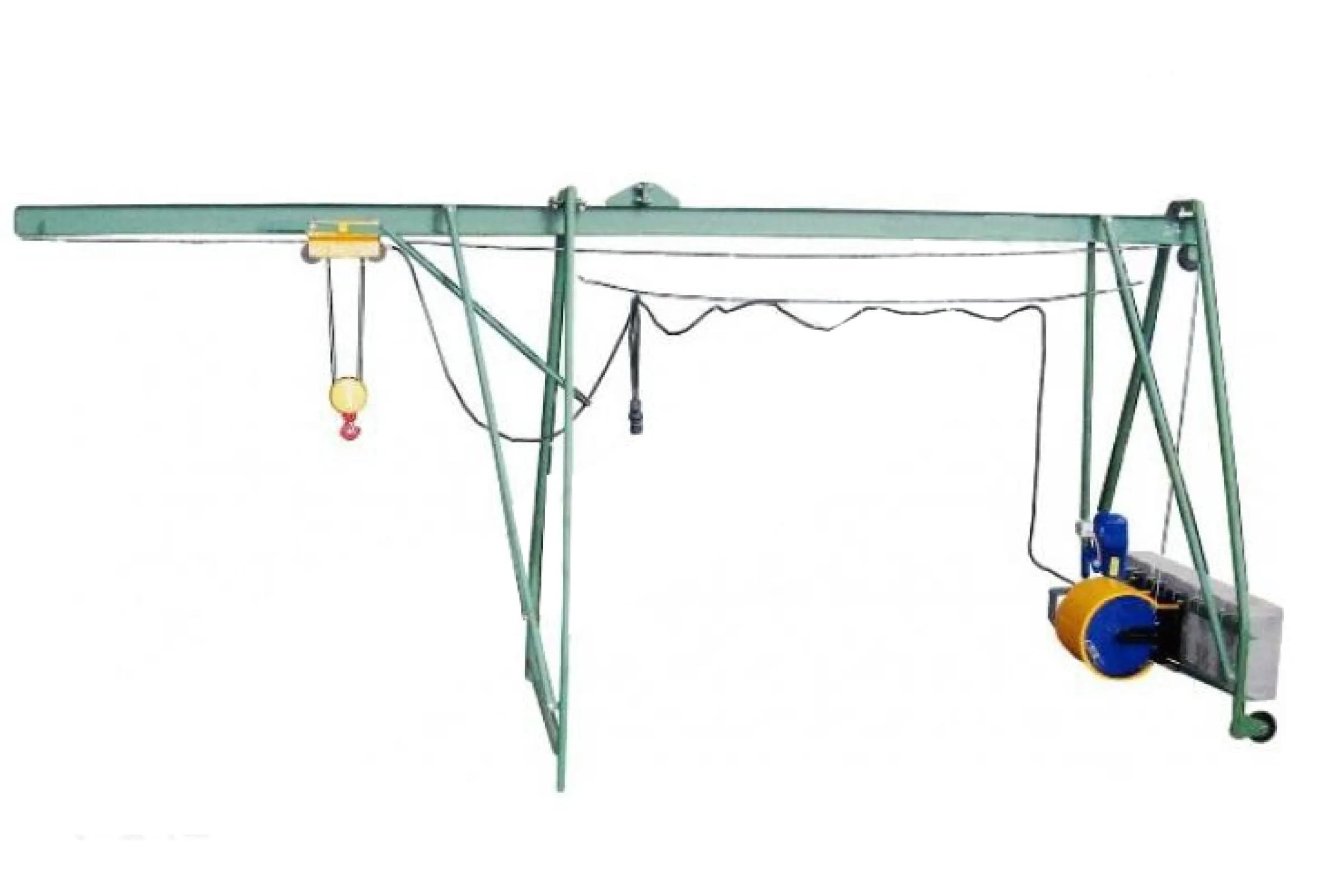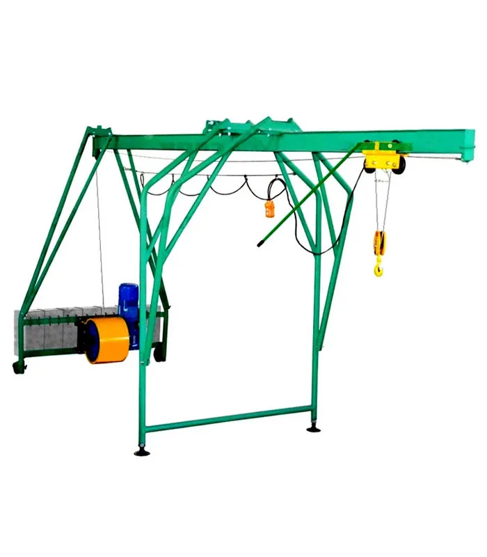 Оригинальная конструкция подъемника содержит в себе механизм на стоевых ногах, благодаря которым перемещение осуществляется без дополнительного демонтажа, а длина вылета стрелы составляет порядка 2 метров. Модель проста в сборке, имеет разборную стрелу крана, и может транспортироваться даже в легковом автомобиле, а для его демонтажа достаточно двух операторов.