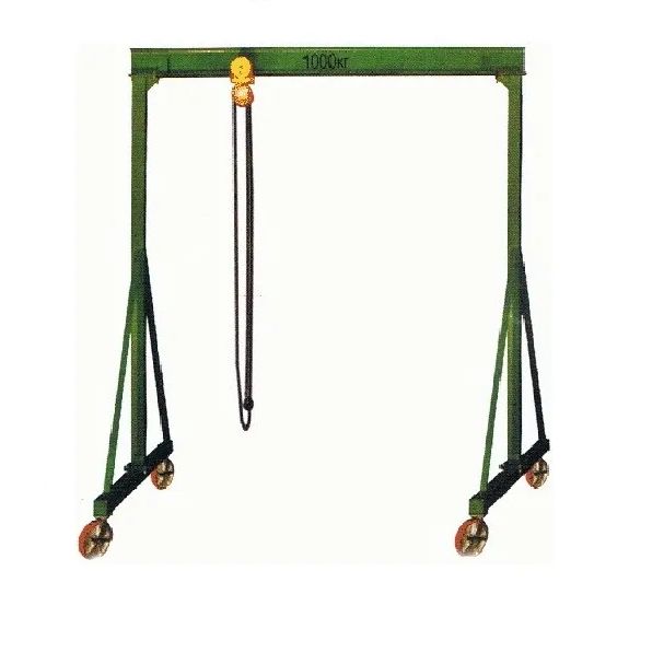 •  УПМ (кран портальный, передвижной кран, кран козловой) состоит из балки пролетной, балок опорных, укосин, стоек, колес поворотных (два из них с тормозом), которые крепятся между собой стандартными крепежными изделиями. Пролетная балка служит для навешивания тали.