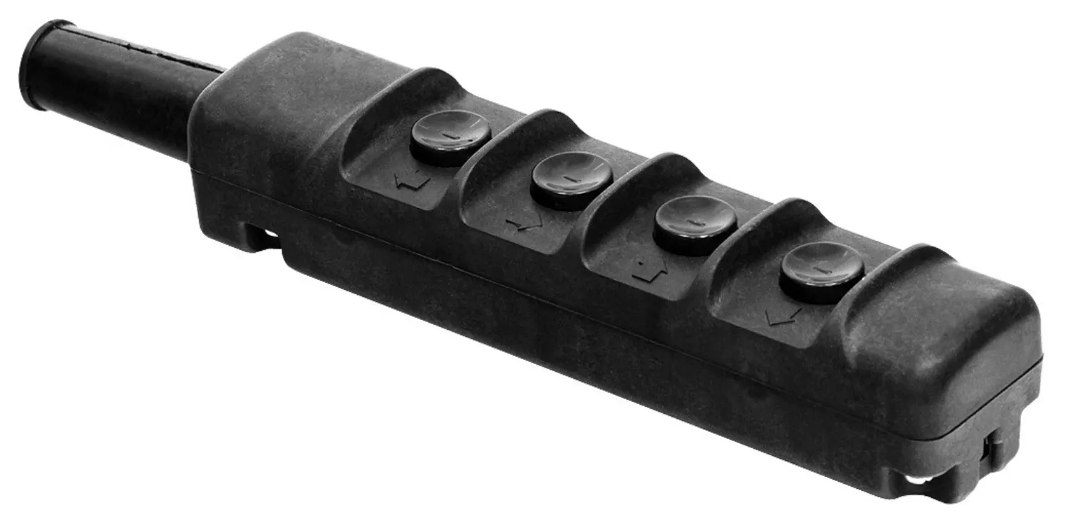 Кнопочный пост ПКТ-40 У 2 с четырьмя установочными кнопками позволяет дистанционно управлять электромагнитными пускателями электрических тельферов для подъема груза. Также при его помощи производится коммутация электрических цепей для управления. Кнопочные посты еще называют тельферными.