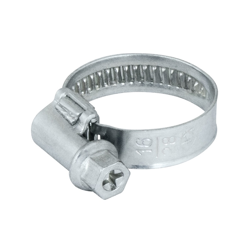 Смещенный относительно центра ленты винт с дополнительной опорой предотвращает ослабевание хомута при работе и позволяет противостоять даже сильной вибрации.