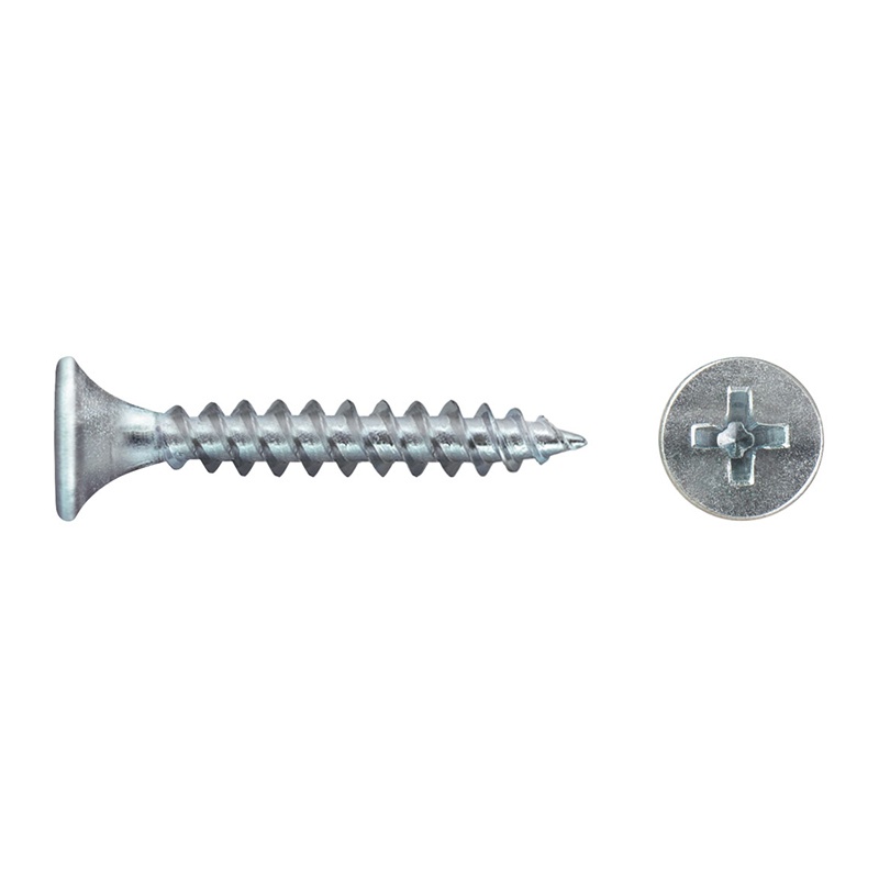 Предназначен для крепления листов гипсокартона к металлическому профилю без предварительного сверления. Имеет потайную рожковую головку, крестообразный шлиц Phillips №2, острый наконечник, частую двухзаходную резьбу.