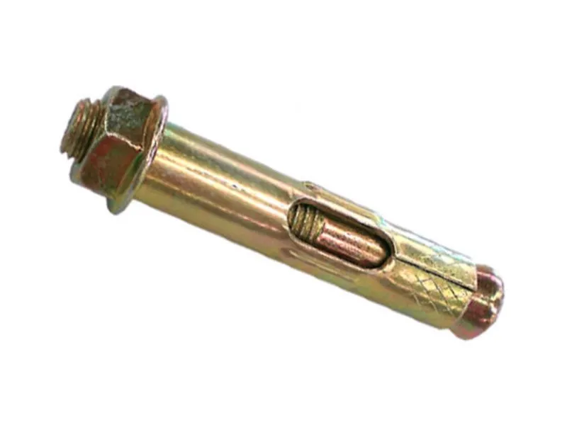 Анкерный болт с гайкой — крепёжный металлический механизм, покрытый антикоррозийным составом из жёлтого цинка. Анкерный болт имеет вид распорной гильзы с рассечением (для простоты анкеровки), со стальным стержнем с расширением снизу и сверху — с резьбой для гайки (в комплектации).