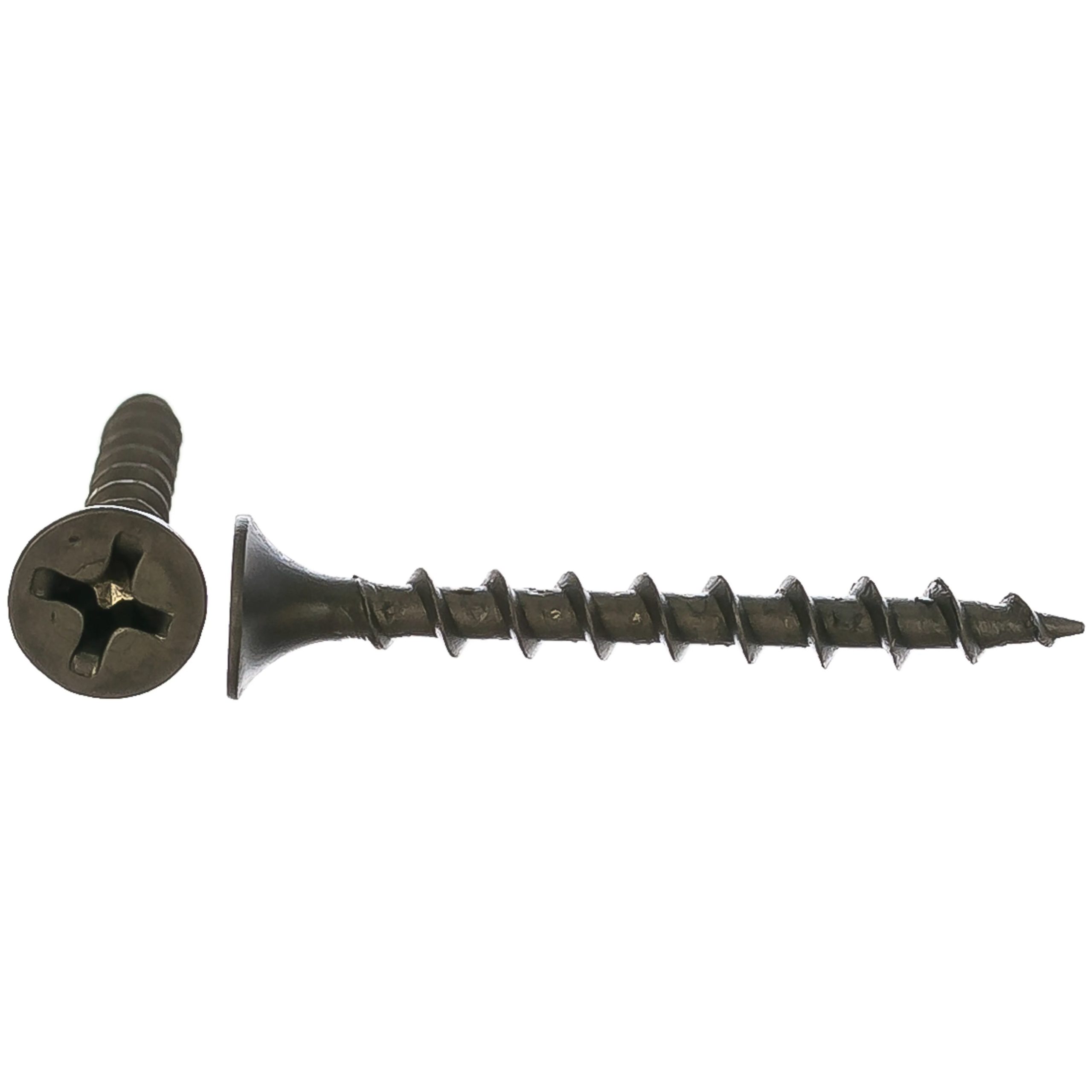 Саморез состоит из острого наконечника, потайной головки с крестообразным шлицем РН2 и редкой полной резьбы. Материал производства – углеродистая сталь. От коррозии защищает оксидирование стали.