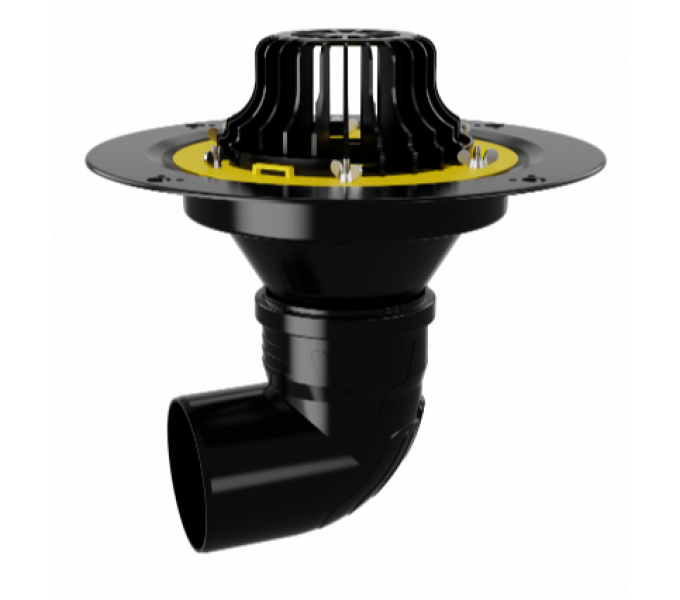 Кровельные воронки Fachmann серии VMС с листвоуловителем и прижимным фланцем для неэксплуатируемых кровель, с диаметром выпускного патрубка 110 мм, предназначены для отвода дождевой и талой воды с места ее сбора, не имеющего возможность размещения вертикальных стояков водосточных систем. Листвоуловитель позволяет предотвратить попадание веток, листьев и прочего мусора в ливневую канализацию. Соединительная деталь трубопровода, предназначена для изменения направления трубопровода с улучшенными шумпоглощающими характеристиками. Двойной резиновый уплотнитель обеспечивает более надежную герметизацию. Благодаря коррозионностои?кому металлическому прижимному фланцу, с зоной прижатия шириной 45 мм, выдерживает большие нагрузки. Механический способ соединения кровельного полотна с воронкой применим для всех типов гидроизоляционных материалов.