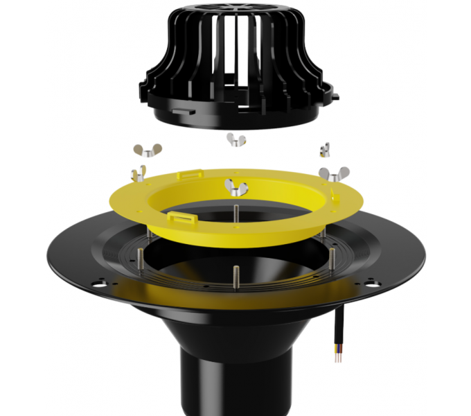 VMO Krone имеет дополнительный барьер на фланце, который предотвращает загрязнение песком, мелким мусором сливной горловины и упрощает прочистку листвоуловителя.