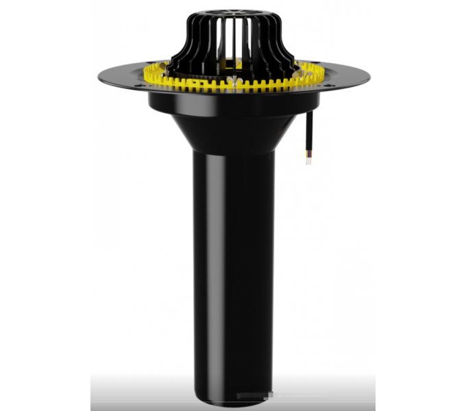 Кровельные обогреваемые воронки Fachmann VMO с листвоуловителем и металлическим обжимным фланцем с вертикальным выпуском используется при устройстве водоотвода c кровли. За счет встроенного саморегулирующегося кабеля обеспечивается гарантированный обогрев в диапазоне температур от +5°С до –7°С в точке сбора воды. Благодаря коррозионностои?кому металлическому прижимному фланцу с зонои? прижатия ширинои? 45 мм, воронка выдерживает большие нагрузки, а механический способ соединения кровельного полотна применим для всех типов гидроизоляционных материалов.