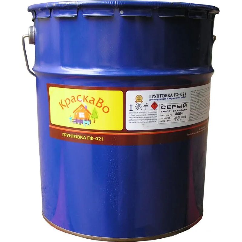 Грунтовка ГФ-021 серая поставляется в металлических банках весом 25 кг.