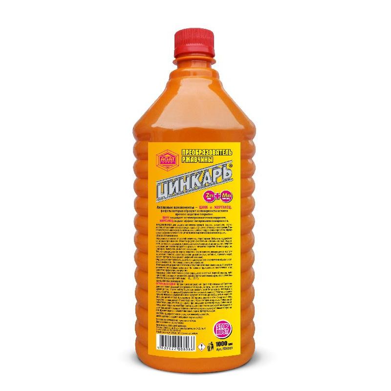 В состав «Цинкаря» входит основа из ортофосфорной кислоты, соединения марганца и цинка. Цинк преобразует поражения металла. Марганец «протравливает» поверхность и образует слой, который препятствует разрушению в будущем.