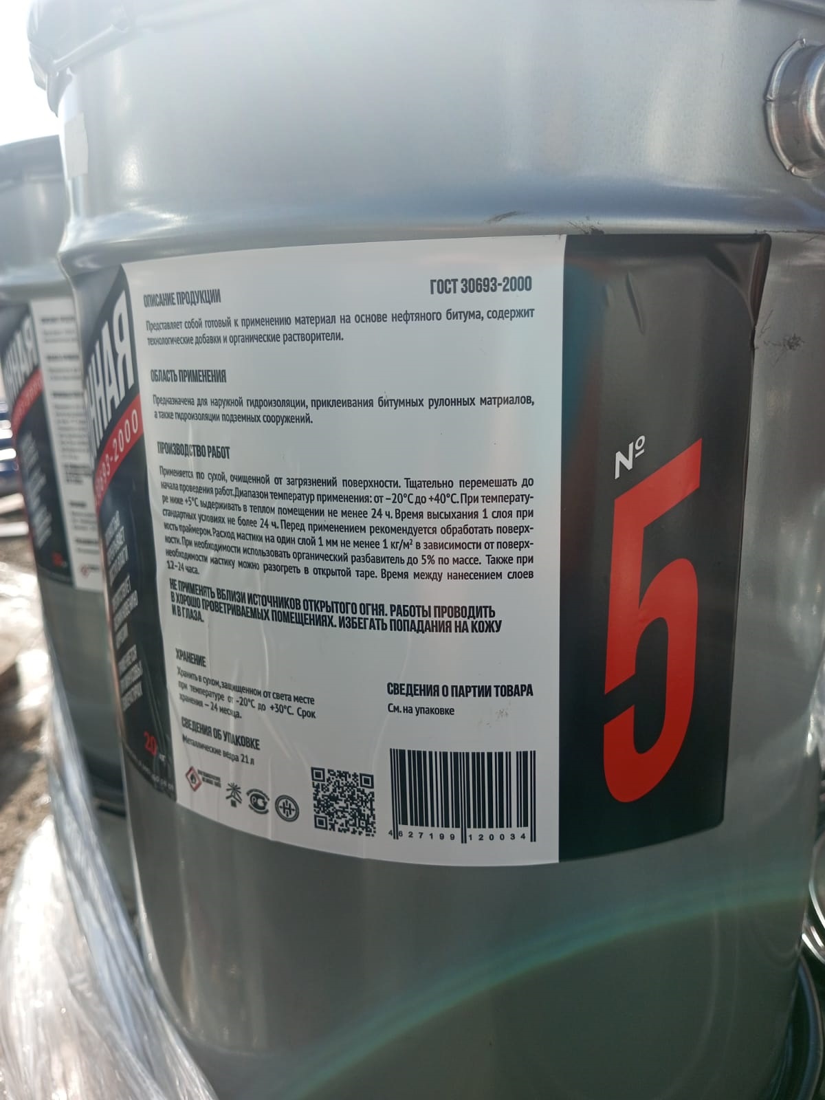 Вы можете заказать Мастика битумная гидроизоляционная (фасовка 20 кг) №5 БП в строительном гипермаркете Строймашсервис-Мск по цене 3 750 ₽ с доставкой по Москве, Московской области и всей России.