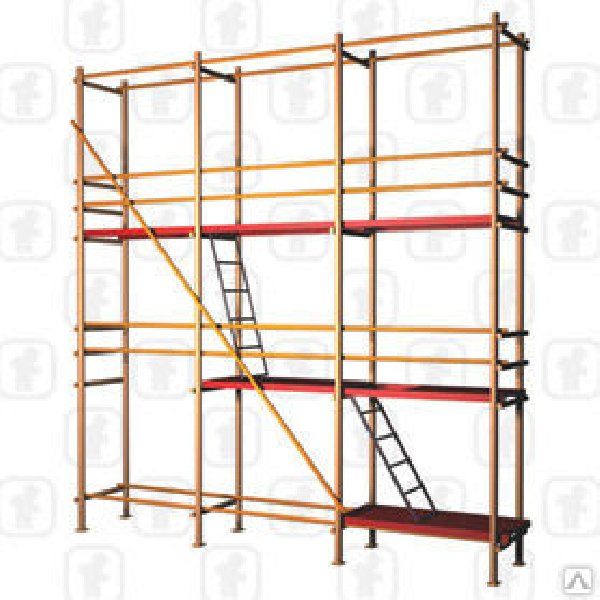 Это трубчатая конструкция, которая состоит из вертикальных стоек и горизонтальных связей. Стойки наращиваются вертикально и горизонтально, и посредством хомутов. Комплектуются между собой по параметрам собираемой конструкции.