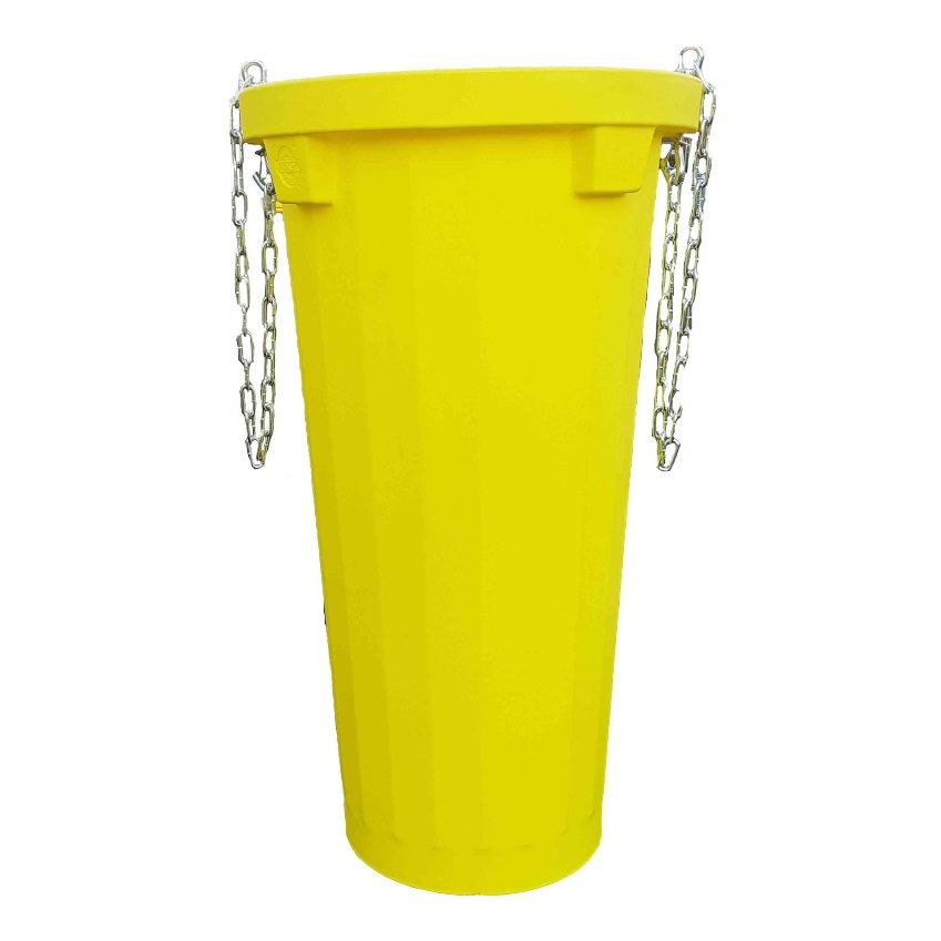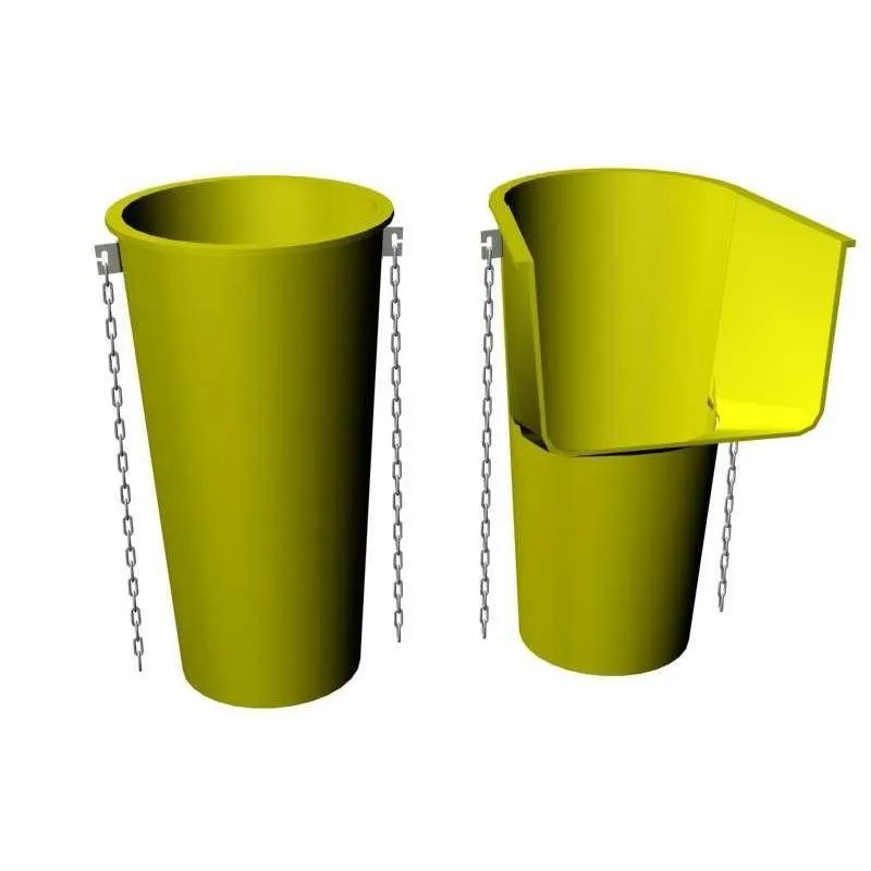Крепление цепи осуществляется не к пластмассовому звену напрямую, а к специальному хомуту, который обвязывает звено мусоросброса по всему периметру. Это повышает себестоимость мусоросброса, но значительно