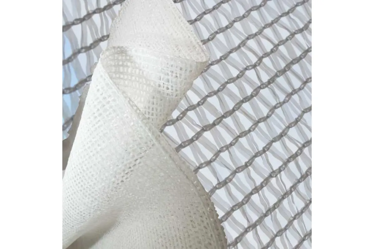 Сетка фасадная производится из полиэтиленовой нити высокой прочности. К особенностям относят отсутствие возможного растрепывания краев, благодаря чему увеличиваются эксплуатационные характеристики изделия. Сетка не распустится в случае порыва, не деформируется при разрезании.