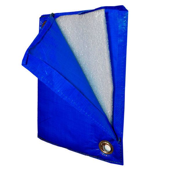Утепленный укрывной тент сделан из двух слоев тарпаулина плотностью 120 г на м2, между которыми проложен слой утеплителя (изолона) толщиной 5 мм. Тент прошит, для удобства крепления по краю установлены люверсы.