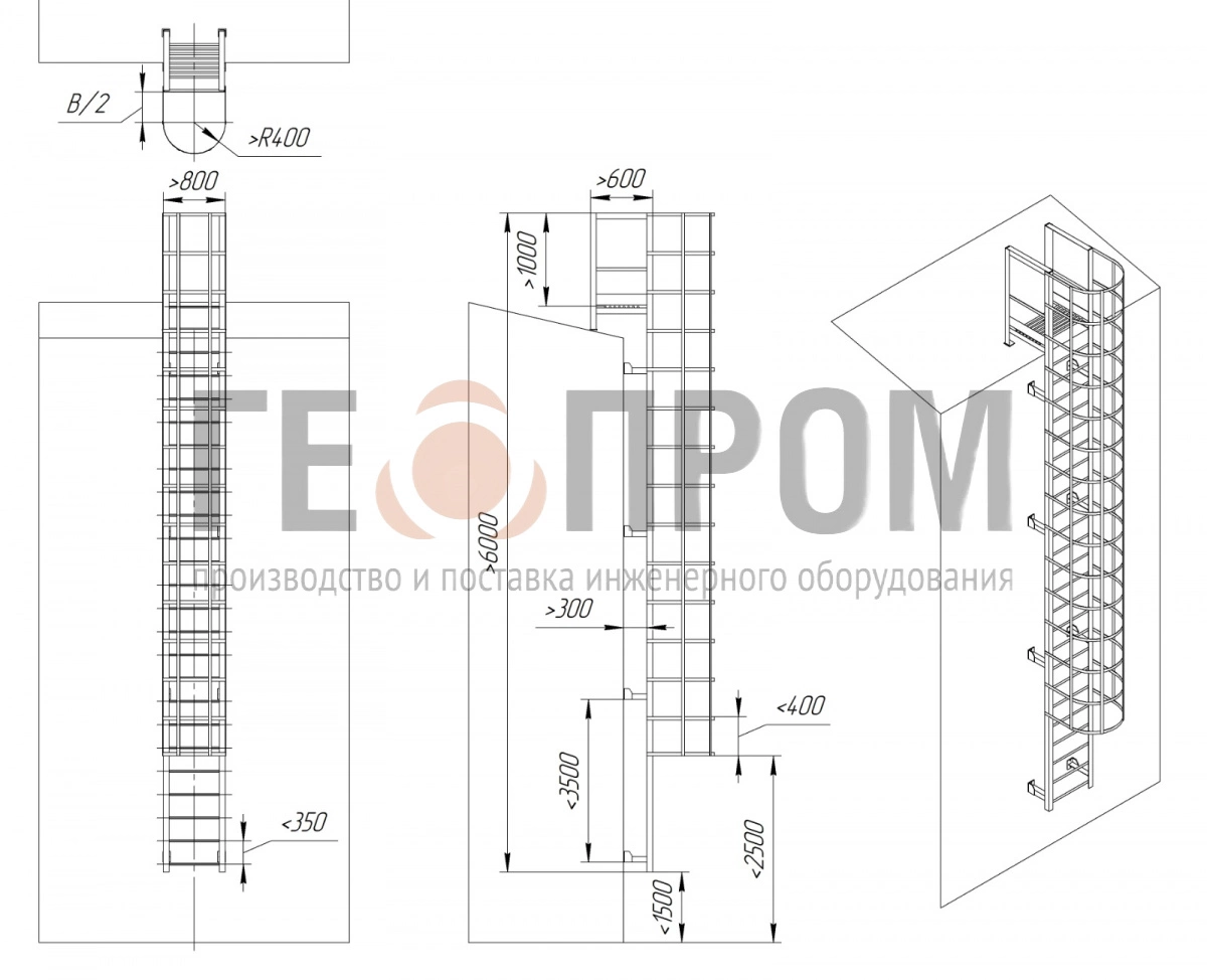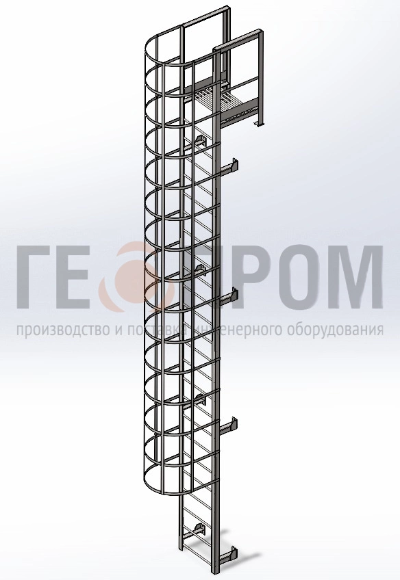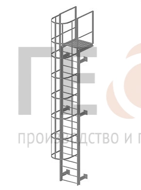 Вертикальная пожарная лестница закрытого типа. Применяется при высоте здания не более 20 метров.
