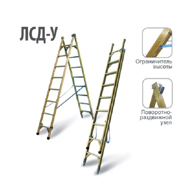 длину лестницы. ЛСД-У 2х9 и ЛСД-У 2х11 для устойчивости комплектуются широкой поперечной траверсой.