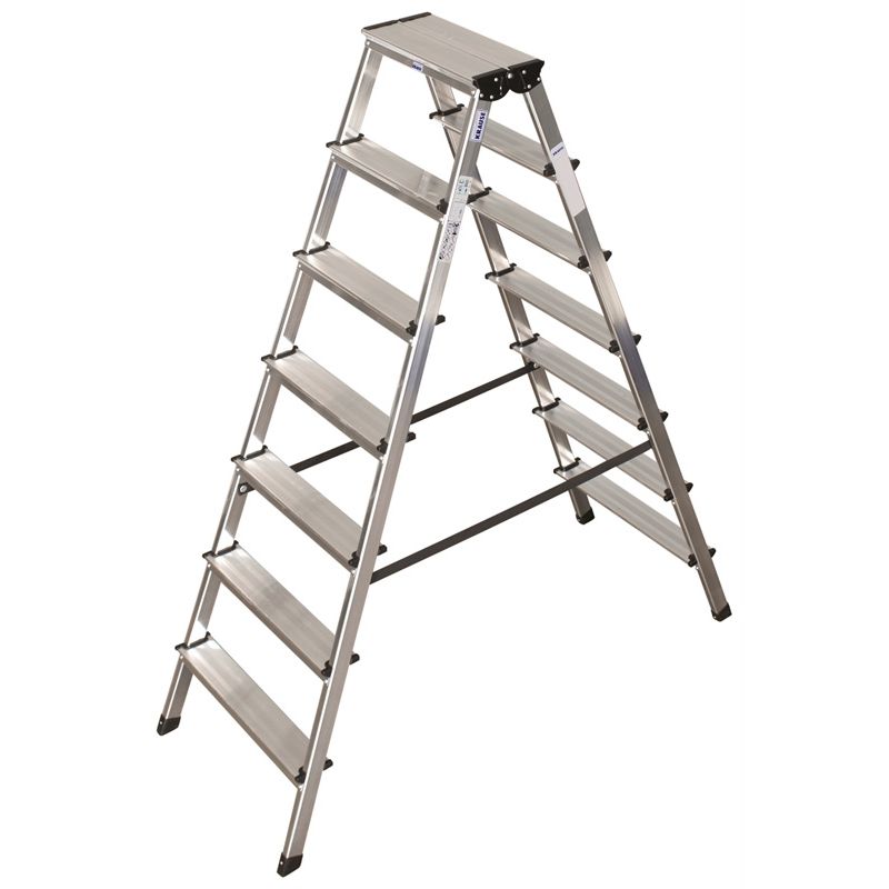 Двухсторонняя стремянка представляет собой конструкцию из двух лестниц, используемую для работ на высоте. Приспособление востребовано при строительстве, ремонте и отделке квартир. С успехом используется в складских помещениях, на производстве, в быту.