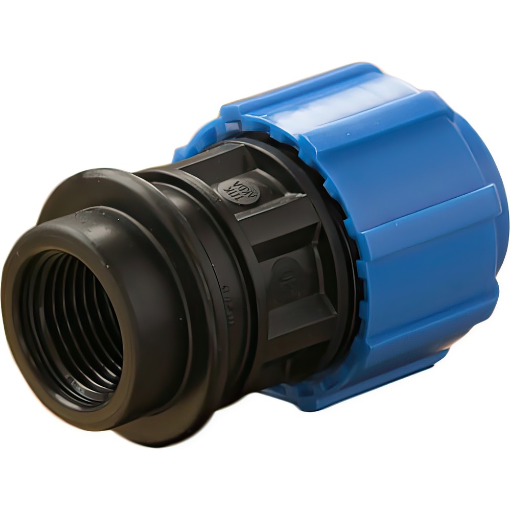 Муфта компрессионная с внутренней трубной резьбой предназначена соединения стального трубопровода с трубопроводом ПНД труб. Муфта компрессионная имеет резьбу, соответствующую размерам и стандартам резьбы стальных труб. Такая муфта так же может использоваться в строительстве различных комбинаций отводов и разветвлений с применением других компрессионных ПНД фитингов. Муфта компрессионная с внутренней трубной резьбой для ПНД труб производится в линейке диаметров 20, 25, 32, 40, 50, 63, 75, 90 и 110 мм. Длина муфты от 63.5 мм до 138 мм (в зависимости от диаметра). Материал муфты — полипропилен. Применяется в системах холодного водоснабжения из ПНД труб при максимальной температуре перекачиваемой воды — 40ºС (кратковременная — 50ºС) и рабочем давлении 1.6 МПа. Гарантия 10 лет. Срок службы — не менее 50 лет.