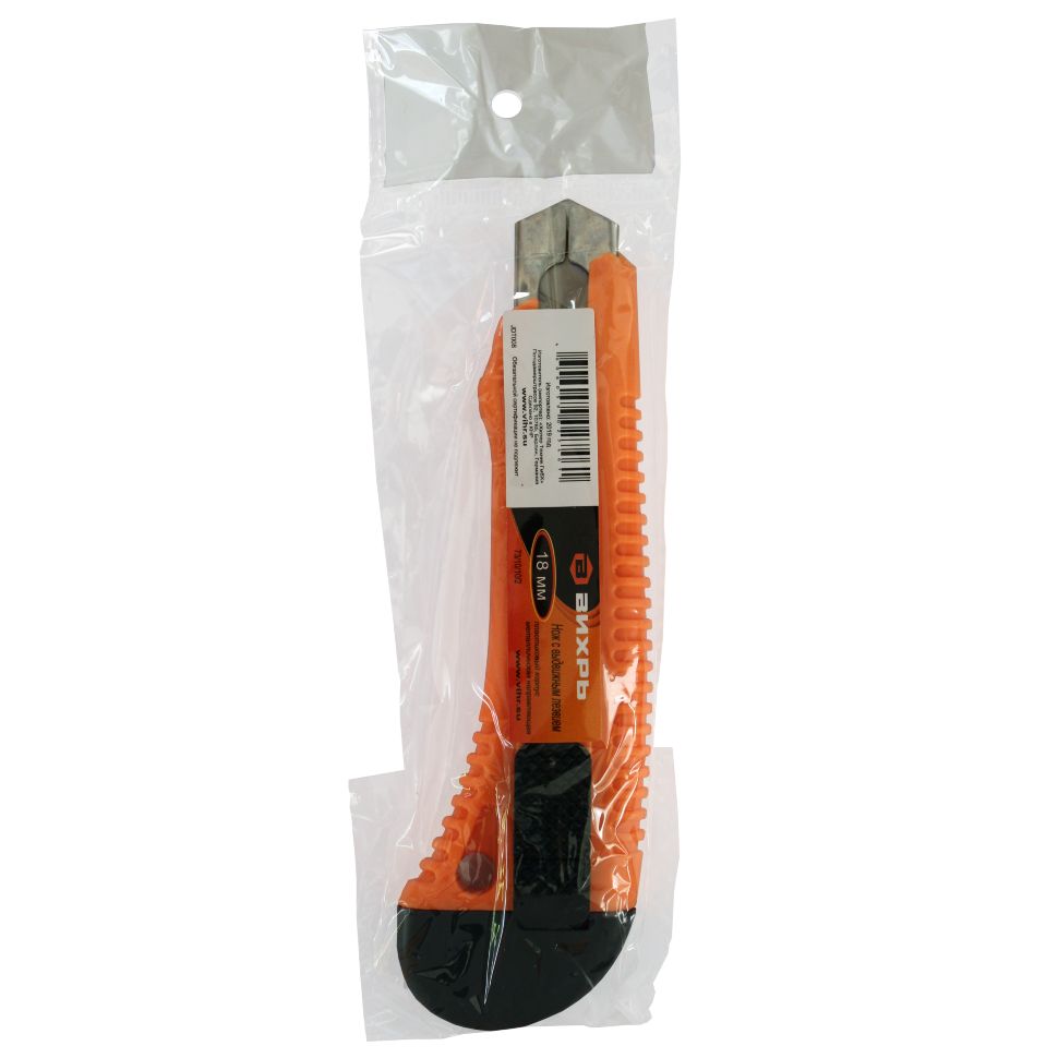 Нож с выдвижным лезвием 18 мм, пластиковый корпус, металлическая направляющая, Вихрь предназначен для резки различных материалов в бытовых, хозяйственных или строительных целях. Нож имеет выдвижные , сегментированные, сменные лезвия, которые можно отламывать по мере износа режущей части. Нож Вихрь имеет пластиковый корпус и оснащен металлической направляющей лезвия, что повышает прочность ножа при давлении на него во время резки.