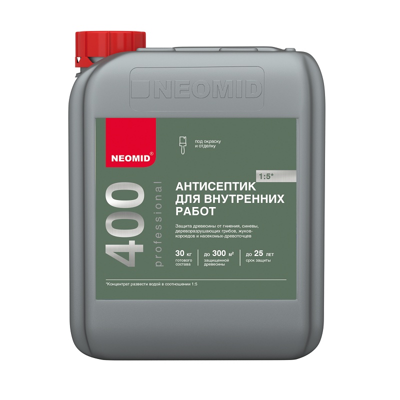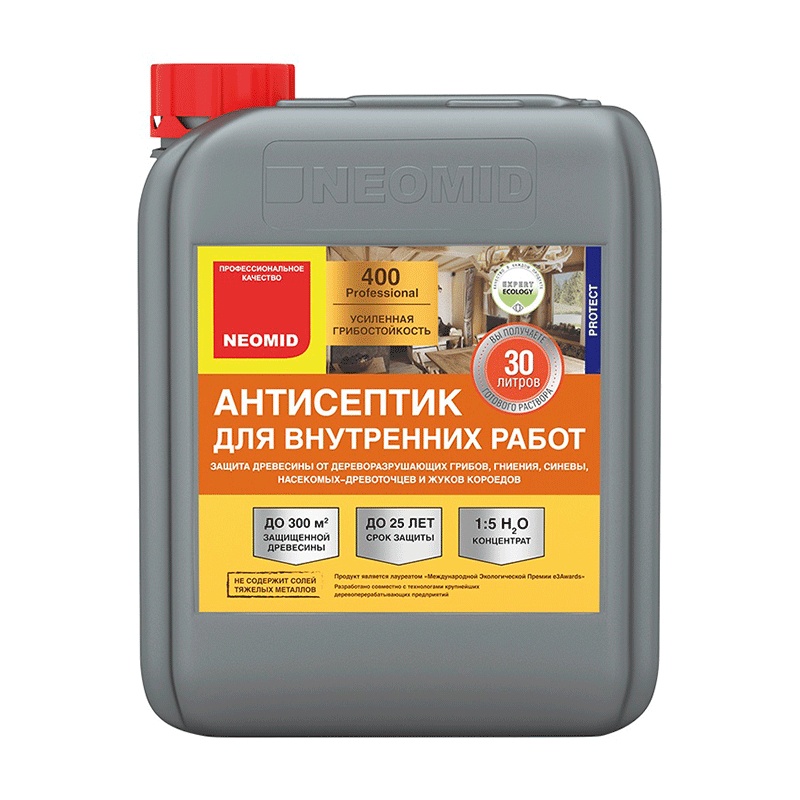 Предназначен для обработки строганных и пиленых деревянных поверхностей внутри помещений. Защищает древесину от действия дереворазрушающих и деревоокрашивающих плесневых грибов, насекомых-древоточцев и короедов на срок до 25 лет. Концентрат, для изготовления рабочего раствора разбавить водой: обработка древесины 1:5, хранения древесины до или после обработки 1:3.