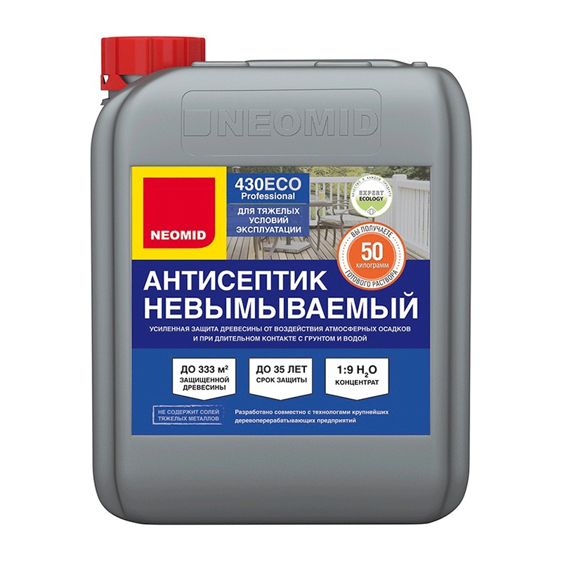 Предназначен для обработки древесины различных пород в тяжелых (влажных) условиях эксплуатации. Подходит для следующих объектов: причалы, террасы, беседки, фундаменты, черные полы, каркасы стен, балки, перекладины, стропила и другие деревянные изделия и конструкции. Концентрат, для изготовления рабочего раствора разбавить водой: обработка древесины 1:9, обработка древесины методом глубинной пропитки 1:19.