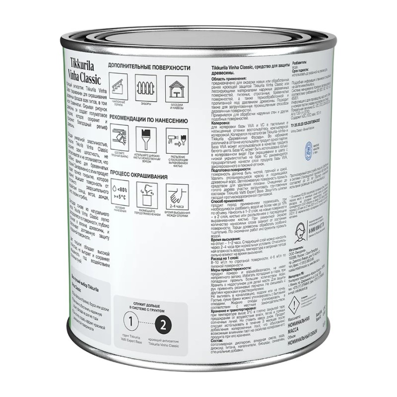 Предназначен для окраски новых или обработанных ранее кроющей защитой или лессирующими материалами наружных деревянных поверхностей, пиленых и строганных поверхностей, а также пропитанной под давлением древесины. Подходит также для загрунтованных промышленным способом деревянных поверхностей. Не подходит для обработки пола.