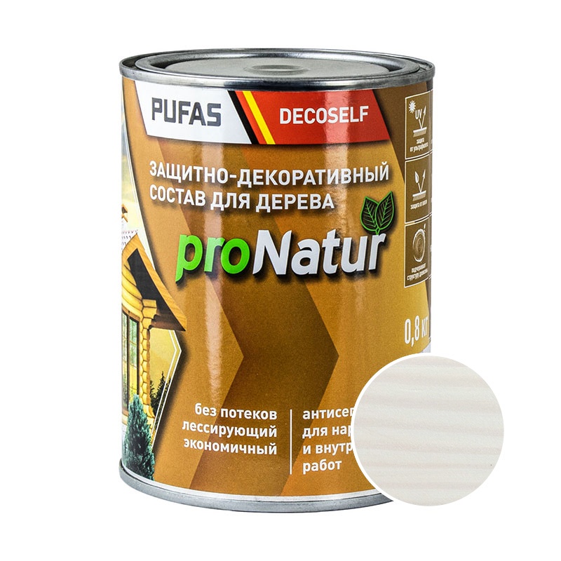 Антисептик лессирующий для дерева Pufas ProNatur белый (0,8 л)