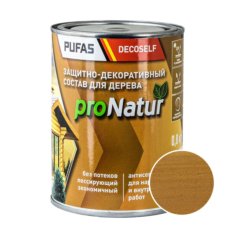 Антисептик лессирующий для дерева Pufas ProNatur дуб (0,8 л)