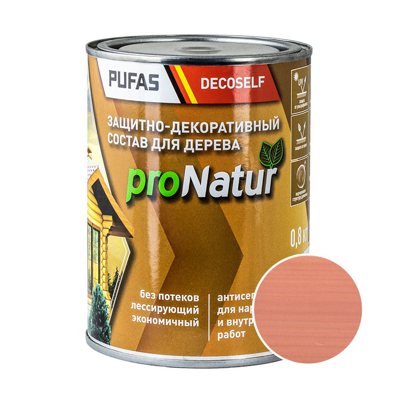 Антисептик лессирующий для дерева Pufas ProNatur персик (0,8 л)