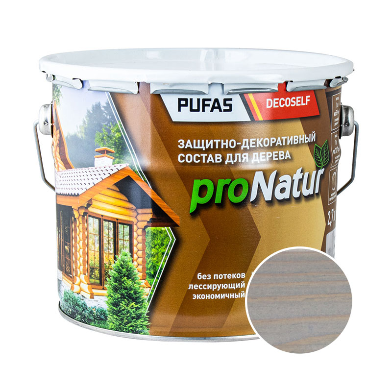 Антисептик лессирующий для дерева Pufas ProNatur серый туман (2,7 л)