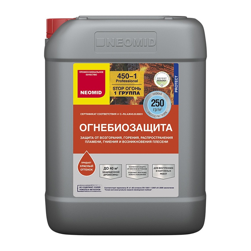 Предназначен как защитная и антисептическая пропитка. Переводит древесину в трудновоспламеняемый и трудногорючий материал, обеспечивая I (первую) и II (вторую) группу огнезащитной эффективности по ГОСТ 53292-2009. Применима для следующих объектов: деревянные стены балок, стропильные системы, несущие брусья, перекрытия, лаги, оконные и дверные блоки, а также другие конструкции из древесины.