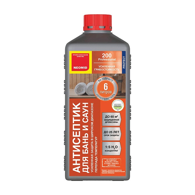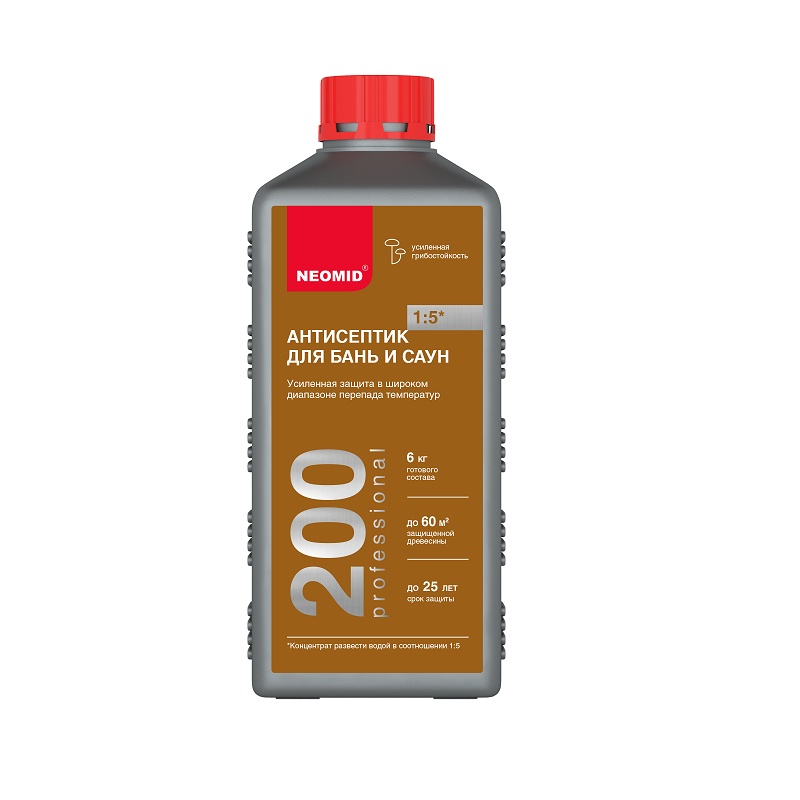 Предназначен для защиты древесины внутри бань и саун, включая полки и скамейки. Обеспечивает сверхвысокую защиту древесины в условиях частого перепада температур и повышенной влажности от гниения, действия дереворазрушающих и деревоокрашивающих плесневых грибов, от разрушения насекомыми-древоточцами на срок до 25 лет. Способно как предотвращать биопоражение, так и останавливать уже начавшиеся процессы разрушения древесины биологическими агентами.