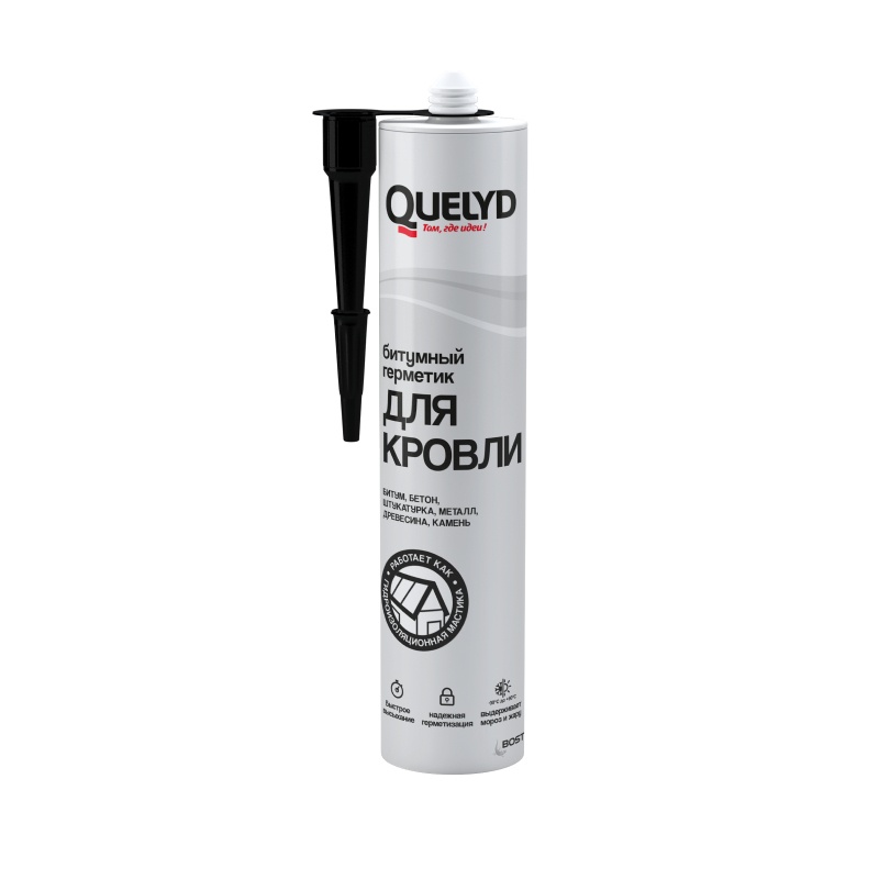 Quelyd «Герметик для кровли» — однокомпонентный битумный клей-герметик, обладающий высокой адгезией к большинству строительных материалов.
