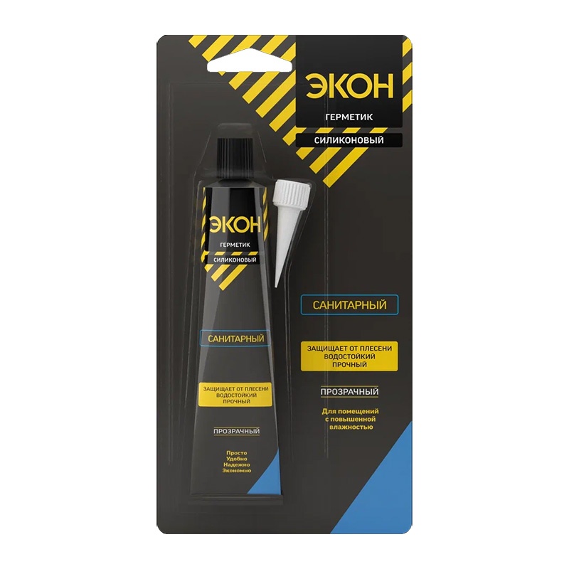 Экон санитарный — универсальный однокомпонентный герметик на основе силиконового полимера для герметизации и заполнения швов и стыков. Герметик предназначен для проведения работ по остеклению, герметизации стеклянных окон и дверей, для внутренних и наружных общестроительных и ремонтных работ со стеклом.
