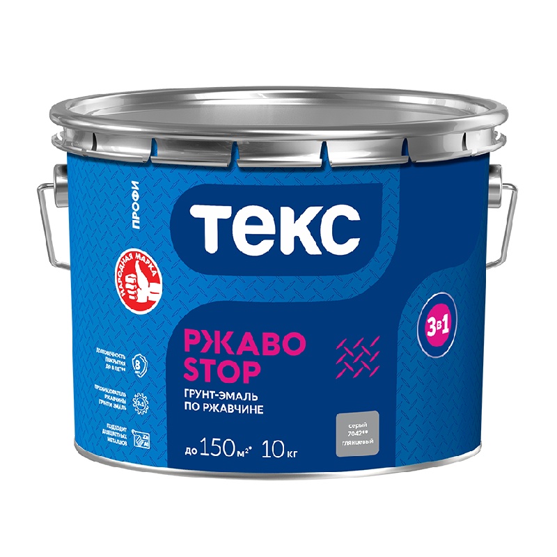 Грунт-эмаль по ржавчине Текс РжавоStop серый (10 кг)