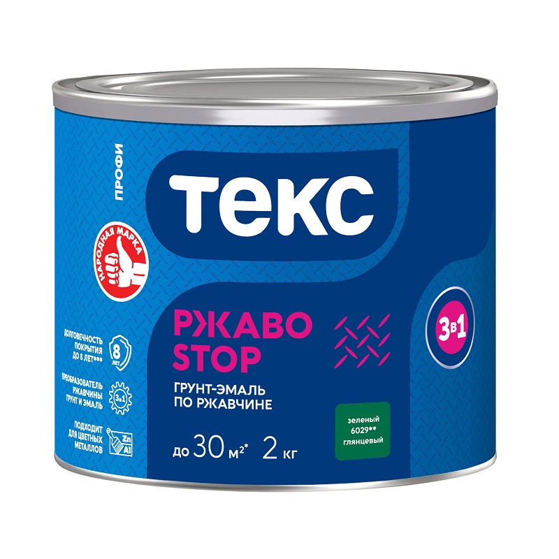 Грунт-эмаль по ржавчине Текс РжавоStop зеленый (2 кг)