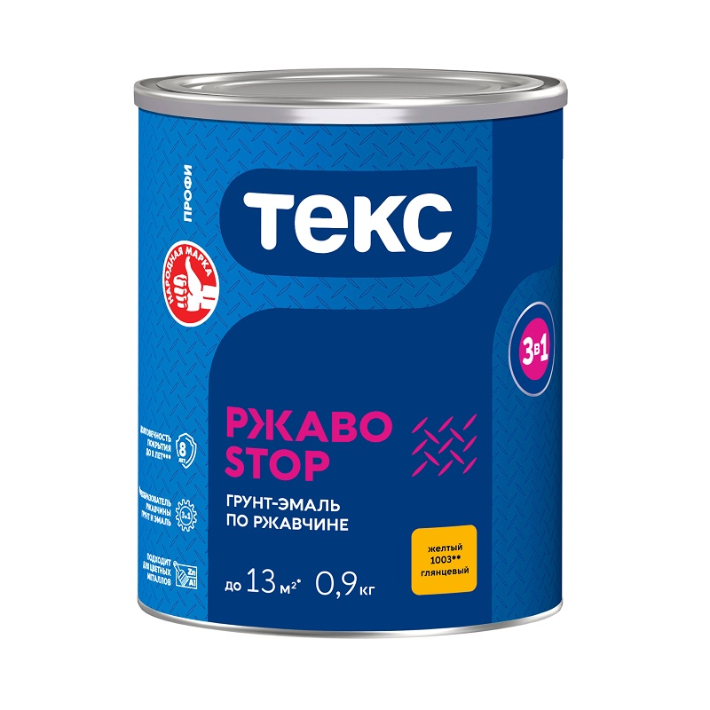 Грунт-эмаль по ржавчине Текс РжавоStop желтый (0,9 кг)