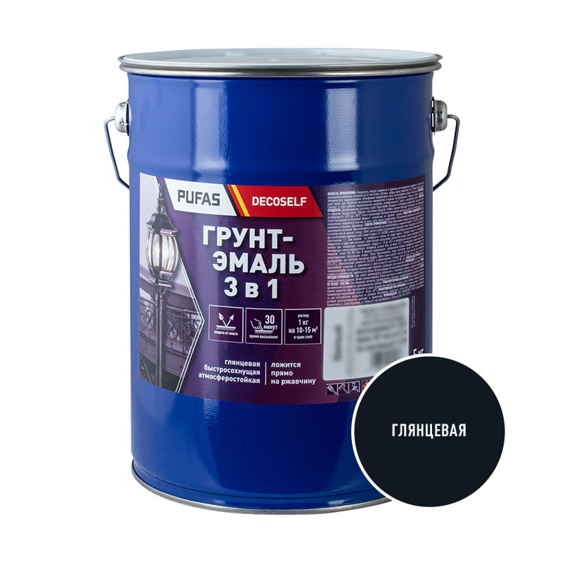 Грунт-эмаль Pufas Decoself 3 в 1 глянцевая черная (5 кг)