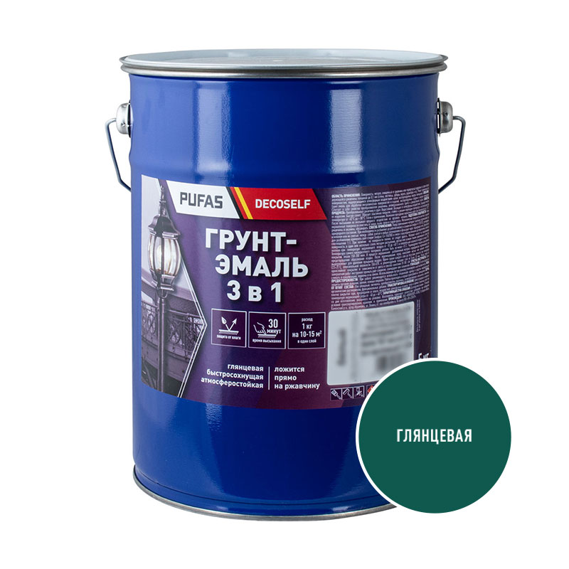 Грунт-эмаль Pufas Decoself 3 в 1 глянцевая зеленая (5 кг)