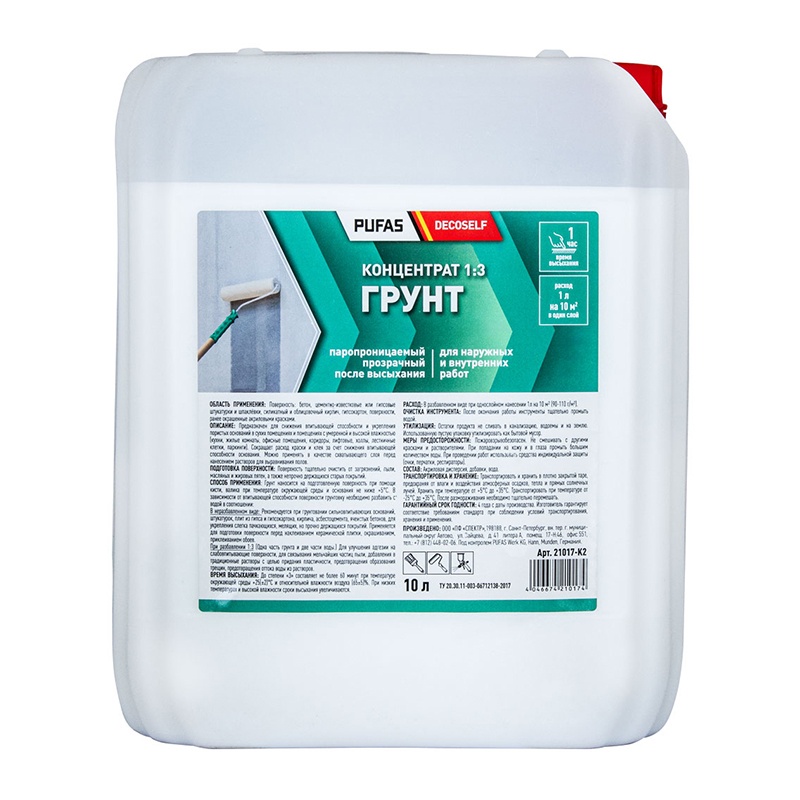 Предназначена для всех минеральных поверхностей, таких как: песочно-цементных, гипсо-волокнистых, известково-песочного камня, бетона, газобетона, кирпича, цементной плиты, шпатлёвок и штукатурок. В не разбавленном виде: рекомендуется при грунтовании сильновпитывающих оснований, штукатурок, плит из гипса и гипсокартона, кирпича, асбестоцемента, ячеистых бетонов, для укрепления слегка, мелящих, но прочно держащихся покрытий.