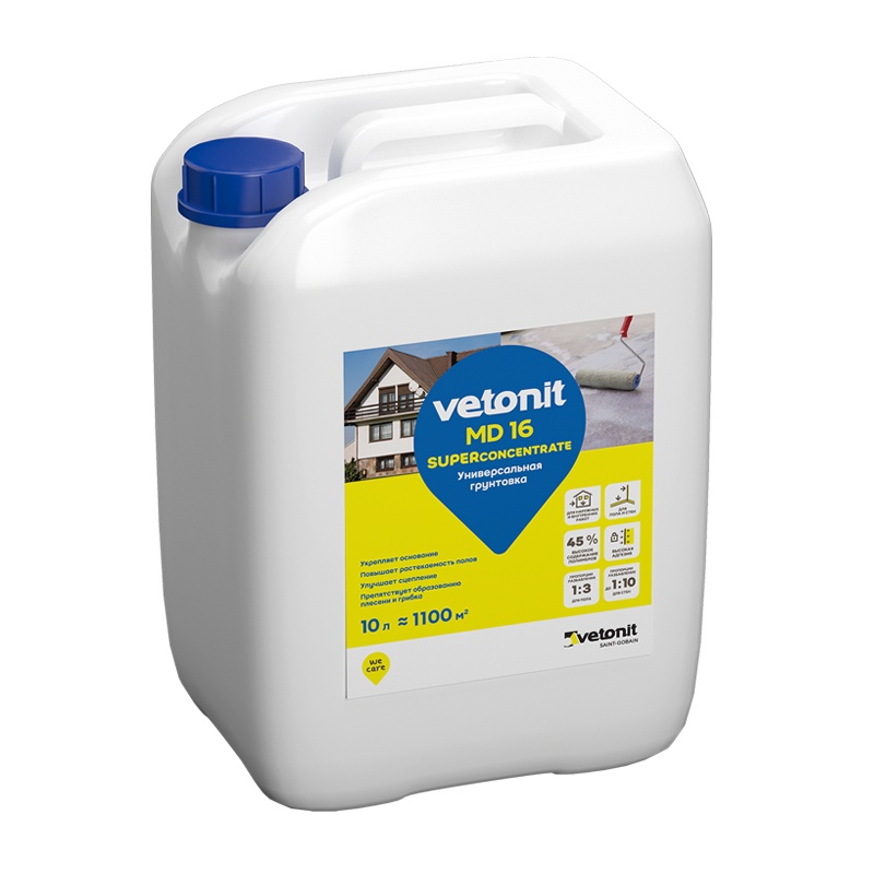 Предназначена для качественной подготовки стен, потолков и полов под последующее оштукатуривание, шпаклевание, окрашивание, оклейку обоями, приклеивание плитки, нанесение полимерной гидроизоляции, ровнителей и наливных полов. Подходит для подготовки оснований при устройстве фасадных систем теплоизоляции Vetonit, перед нанесением минеральных декоративных штукатурок и окраской акриловыми, силиконовыми и силикатными красками. Укрепляет поверхность, снижает ее впитывающую способность, улучшает сцепление последующих слоев с основанием. Высокое содержание полимеров (от 45%) позволяет использовать продукт на площади до 1100 м2. Для наружных и внутренних работ. Расход концентрата 10–100 мл/м2. Средний расход разбавленного грунта 100–200 мл/м2.