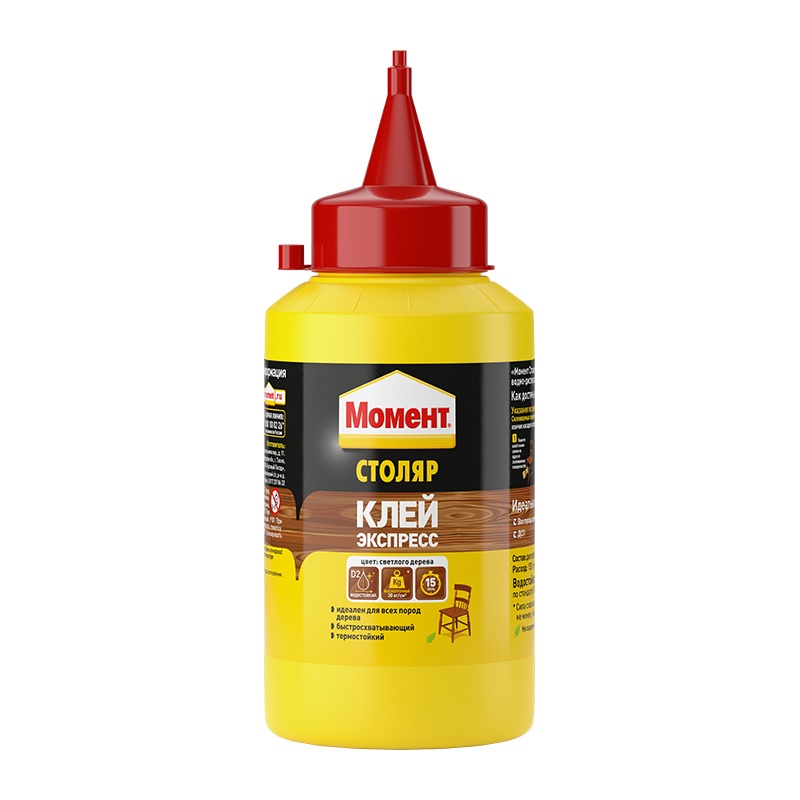 Предназначен для всех пород дерева, ДСП, фанеры, шпона, облицовочных материалов, картона, фурнитуры. Рекомендуется применять при сборке и ремонте мебели. Имеет цвет светлых пород дерева. Устойчив к кратковременному воздействию воды.
