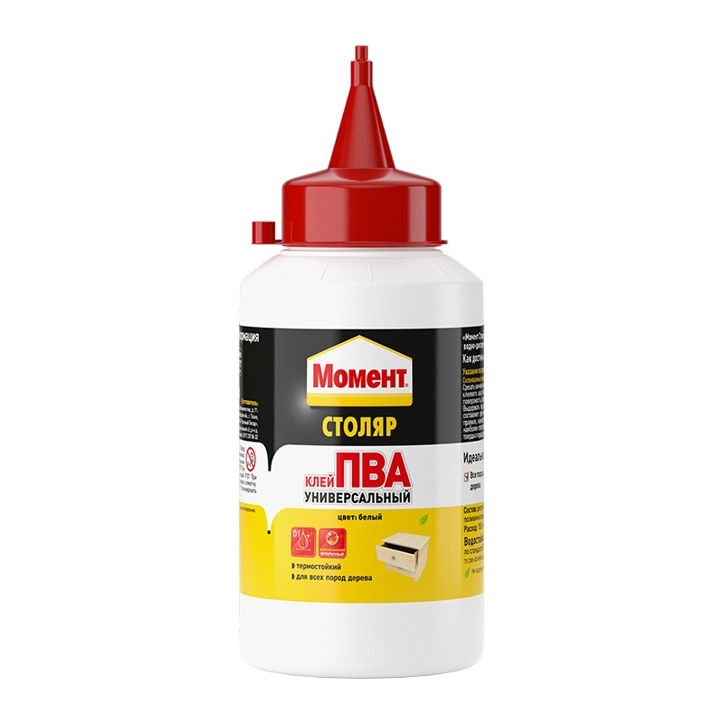 Предназначен для склеивания, ремонта и изготовления изделий из различных видов дерева, ДСП, фанеры, картона. Обладает хорошей вязкостью. Термостойкий. Не окрашивает дерево, прозрачный шов после высыхания.