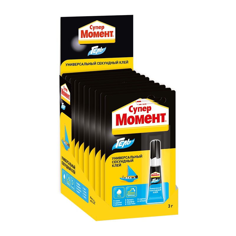 Предназначен для всех видов быстрых ремонтных работ в быту, мастерской, автомобиле, при конструировании моделей. Мгновенно склеивает в любых сочетаниях фарфор, керамику, дерево, кожу, резину, металл, пробку, картон, большинство пластиков. Не растекается, не капает. Хорошо подходит для вертикальных и пористых поверхностей. Возможность коррекции при склеивании. Клеит за 10 секунд.