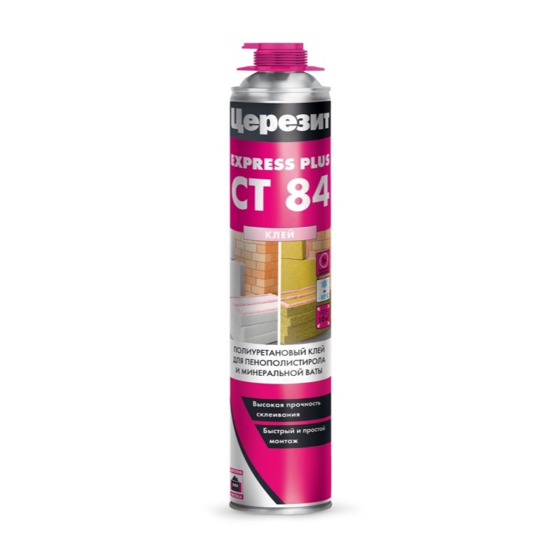 Обладает высокой адгезией к различным основаниям. Высокая производительность: 1 баллона хватит на 10 м2 фасада — в 2 раза больше, чем мешка цементного клея. Мало расширяется при отверждении. Ускоряет работы: крепление анкерами возможно уже через 2 часа после приклеивания утеплителя, что сокращает сроки монтажа на 3 дня в сравнении с традиционной системой. Прекрасные теплоизоляционные свойства, аналогичные пенополистирольному и минераловатному утеплителю, в отличие от цементного клея. Особенно эффективен при температуре от –10°C и высокой влажности воздуха, когда твердение цементных клеев существенно замедляется.