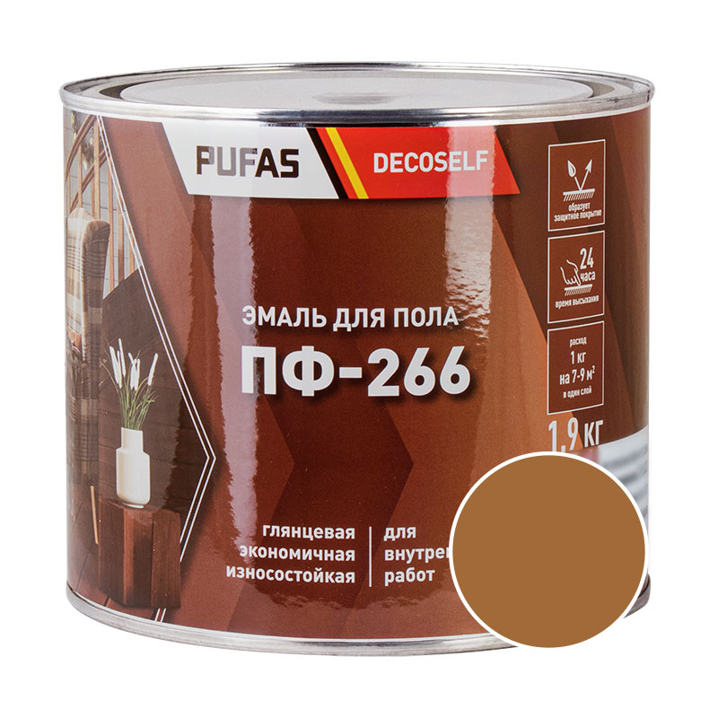 Эмаль для пола Pufas Decoself ПФ-266 золотисто-коричневая 1,9 кг