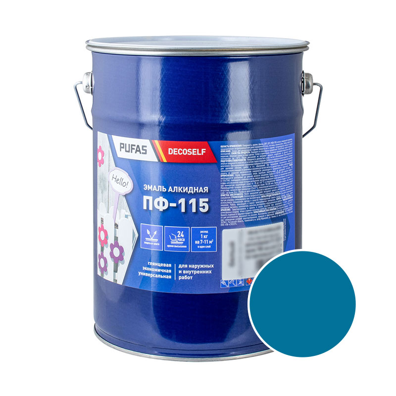 Эмаль Pufas Decoself ПФ-115 голубая (5 кг)