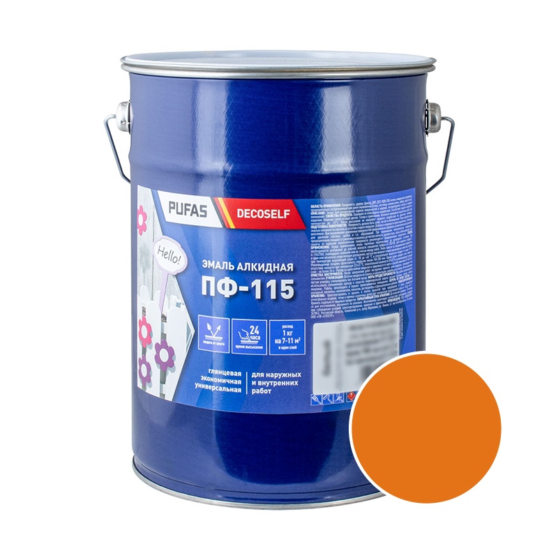 Эмаль Pufas Decoself ПФ-115 оранжевая (5 кг)